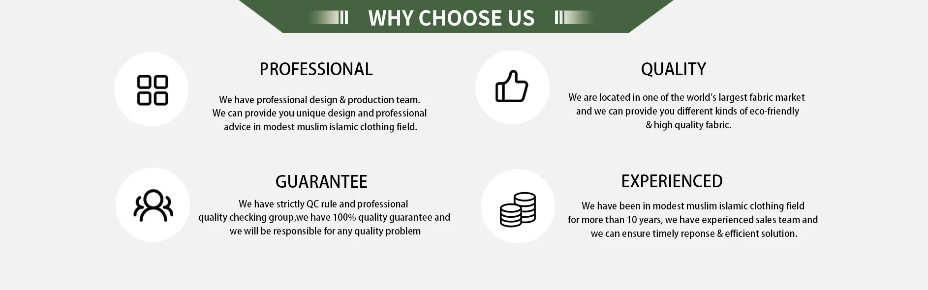 Our company own the factory, and there are over 10 years experience for islamic clothing.